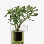 LSA | Un grand pot en verre à arrosage automatique en couleur vert/olive, avec un cordon en coton. Il existe en 3 tailles [ 90, 120 et 180 euros ]